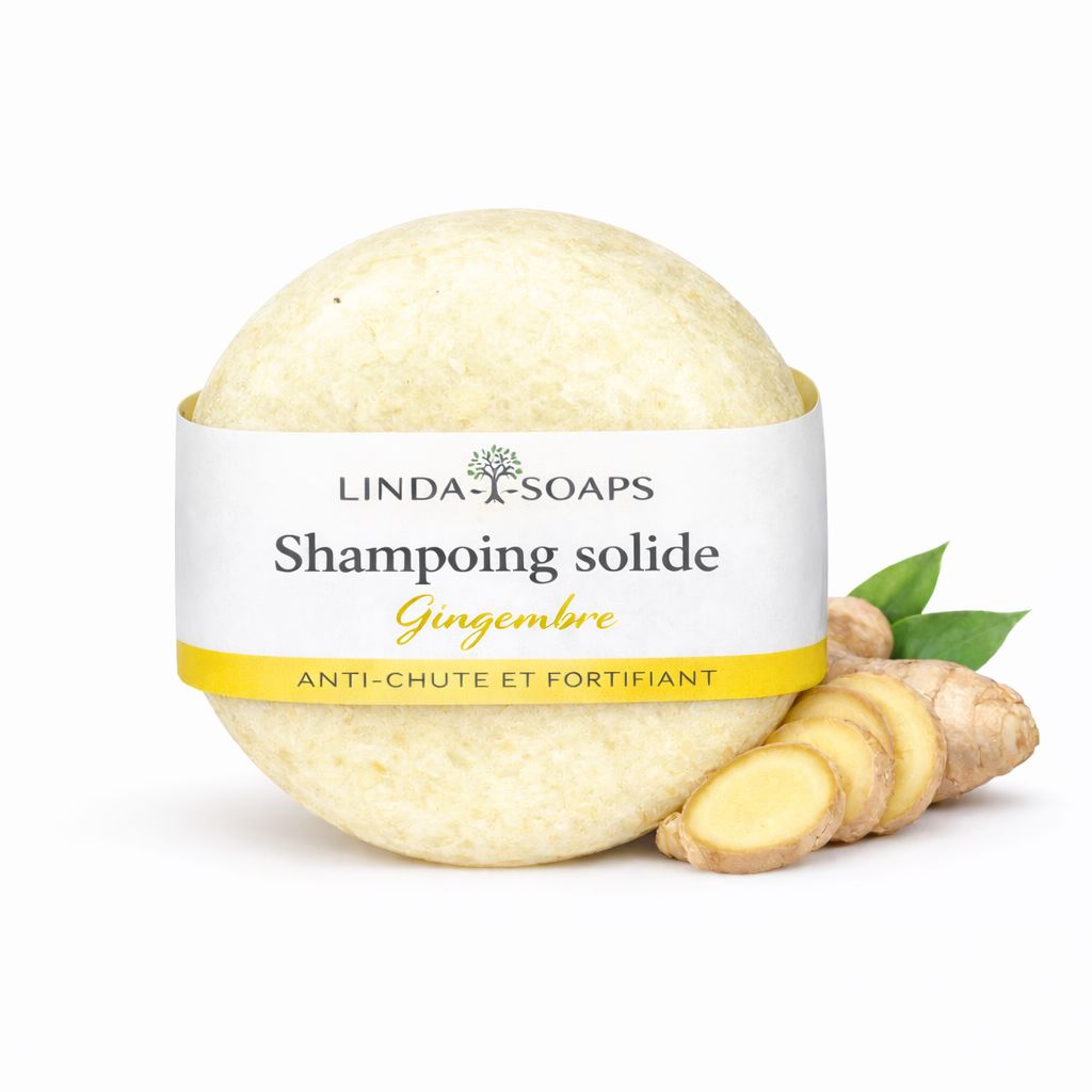 Découvrez la puissance du gingembre dans un shampoing solide naturel, conçu pour stimuler le cuir chevelu, renforcer les racines et limiter la chute des cheveux.
